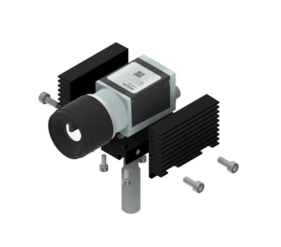 - Universal camera holder and heat sink for 29 x 29 mm sugarcube cameras, tested for Basler ace, ace 2, FLIR, IDSAVT-MAKRO, Opto Engineering – COE, LUCID, JAI Go and Go-X.
