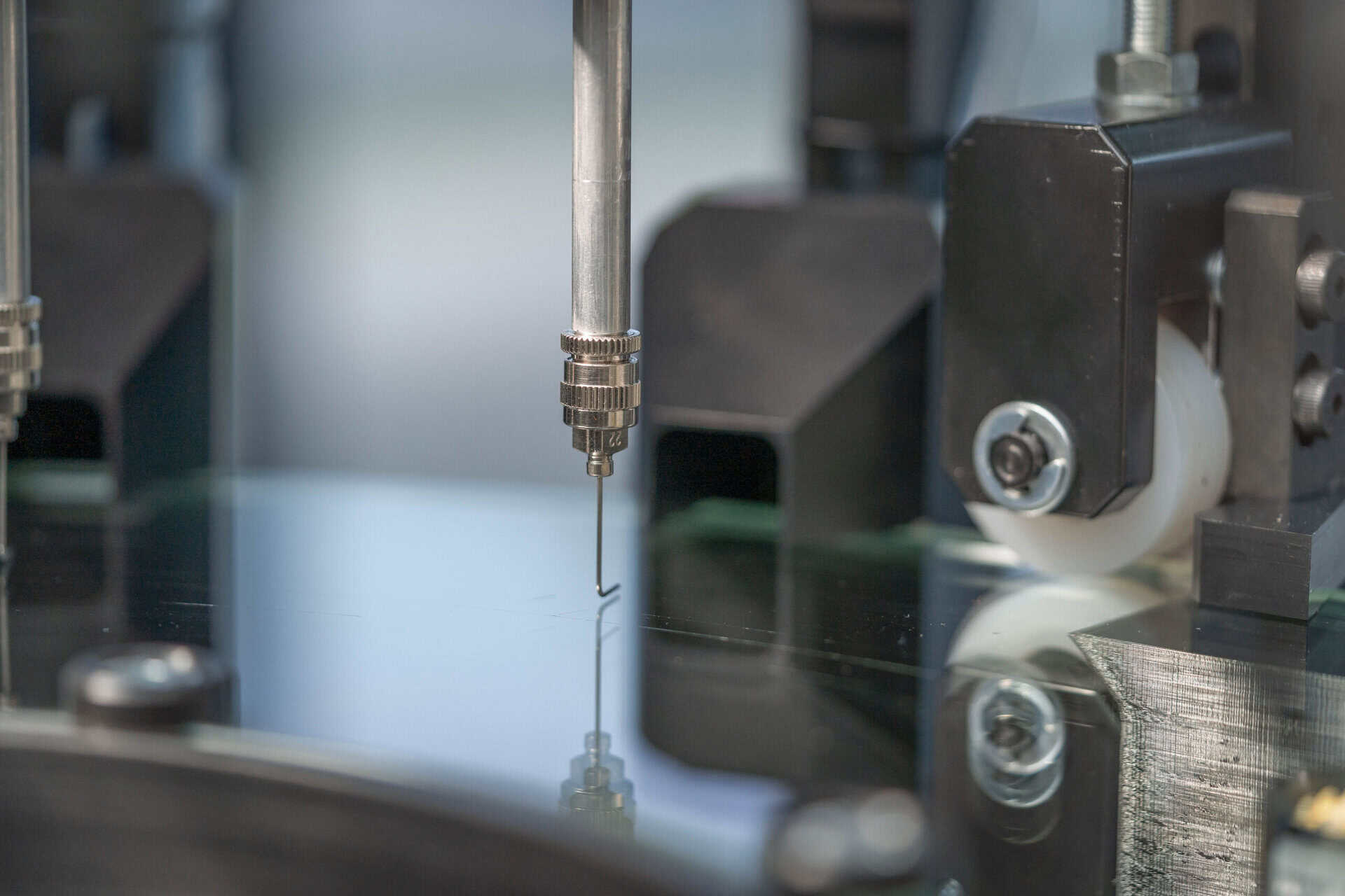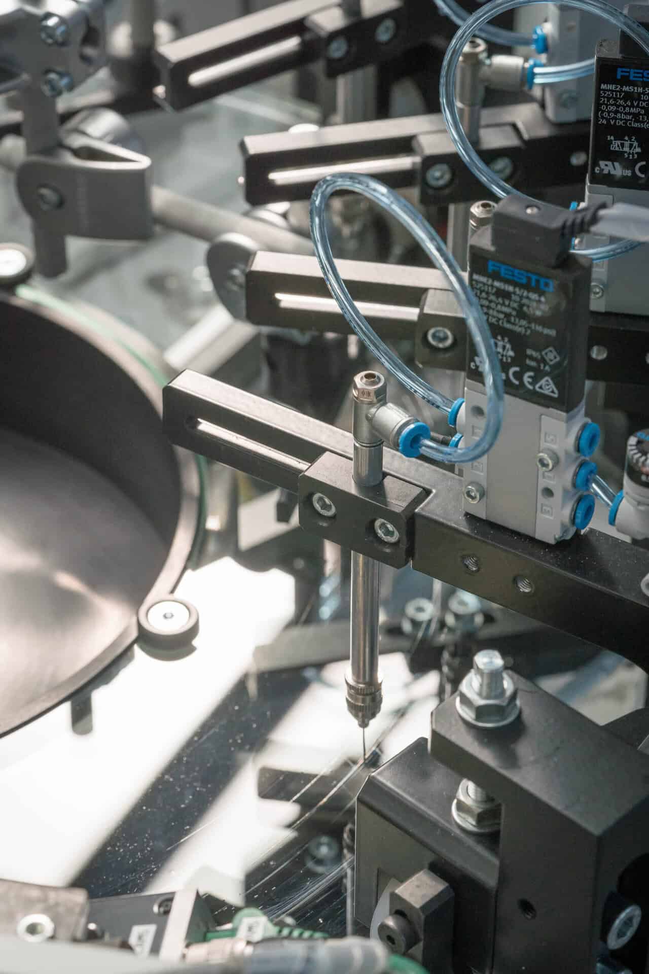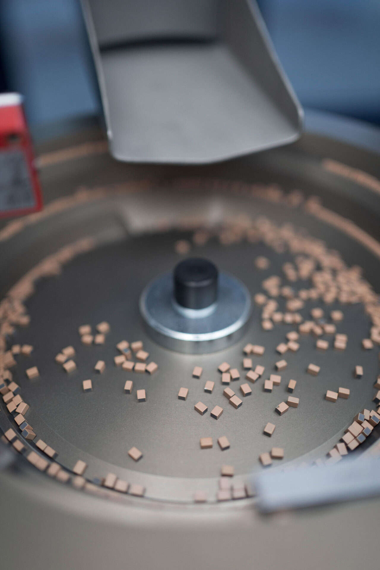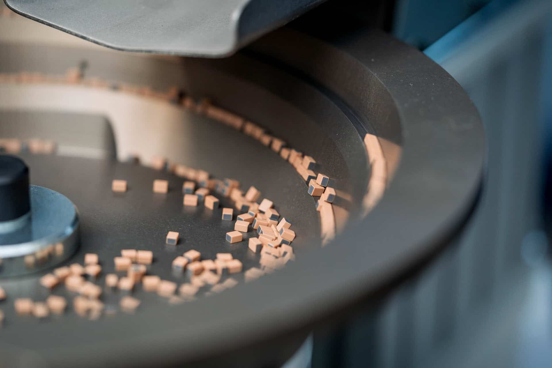 Srdcem stroje je rotační skleněný talíř s 12 pozicemi, na kterém jsou produkty postupně přiváděny pod jednotlivé kontrolní a třídící stanice. Díky vhodnému rozmístění kamer a osvětlení je možné kontrolovat součástky ze všech šesti stran a odhalit jak povrchové, tak i obtížně viditelné defekty. Kombinace klasického a polarizovaného světla umožňuje detekci i mikroskopických vad v povrchové úpravě nebo skrytých poruch v konstrukci součástek.